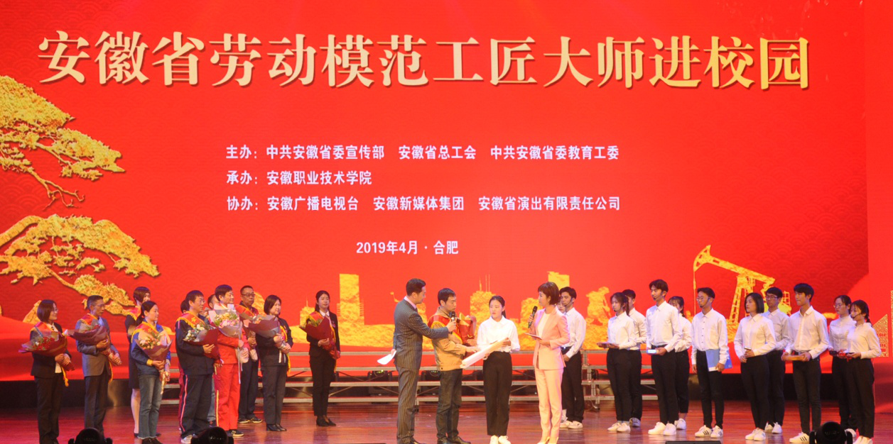 4月3日,由省委宣傳部、省總工會、省委教育工委聯合主辦的“安徽省勞動模范工匠大師進校園”活動在安徽職業技術學院舉行。省委常委、宣傳部長虞愛華,省人大常委會副主任、省總工會主席李明出席。