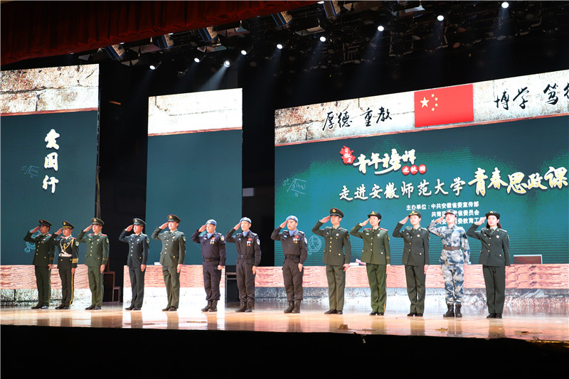最后,路丙輝做課堂總結(jié)。青年榜樣、安徽師范大學(xué)合唱團(tuán)學(xué)生代表上場,全體觀眾共同合唱《我和我的祖國》,全場揮舞著小紅旗,齊聲歌唱,為思政課畫上圓滿句號(hào)。除“青春思政課”專題活動(dòng)外,此次進(jìn)校園還注重開展延伸活動(dòng),舉辦了“不忘初心 牢記使命”安徽青年運(yùn)動(dòng)百年回眸圖片展,并以“青春分享會(huì)”的形式,邀請部分青年榜樣走進(jìn)學(xué)生中開展微宣講,鞏固和強(qiáng)化了教育效果。