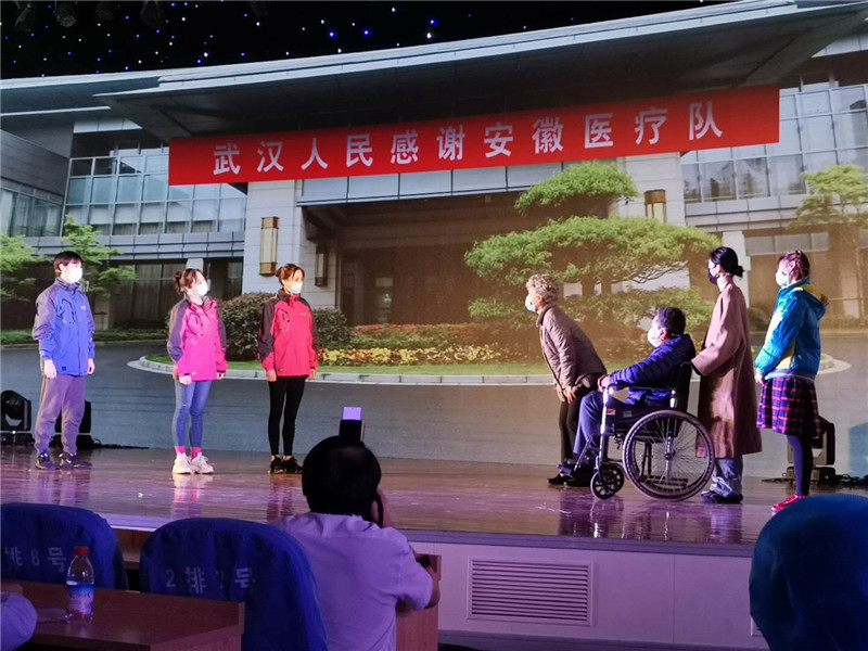 第一篇章,生動再現了安徽省青年醫護工作者面對突如其來的疫情舍小家、為大家,主動請戰,為民出征,參加支援湖北醫療隊,抗擊新冠肺炎疫情的感人場景;第二篇章,真情演繹了醫護人員始終把人民生命安全和身體健康放在第一位,不放棄每一位患者,不放棄一絲希望,全力保障人民的生命權,積極采用中西醫結合、“一人一方”、跳廣場舞等方式進行身體治療和心理康復動人畫面;第三篇章,反映了經過全國軍民艱苦卓絕的努力,武漢保衛戰、湖北保衛戰取得決定性成果,安徽省支援湖北醫療隊凱旋歸來的精彩片段。