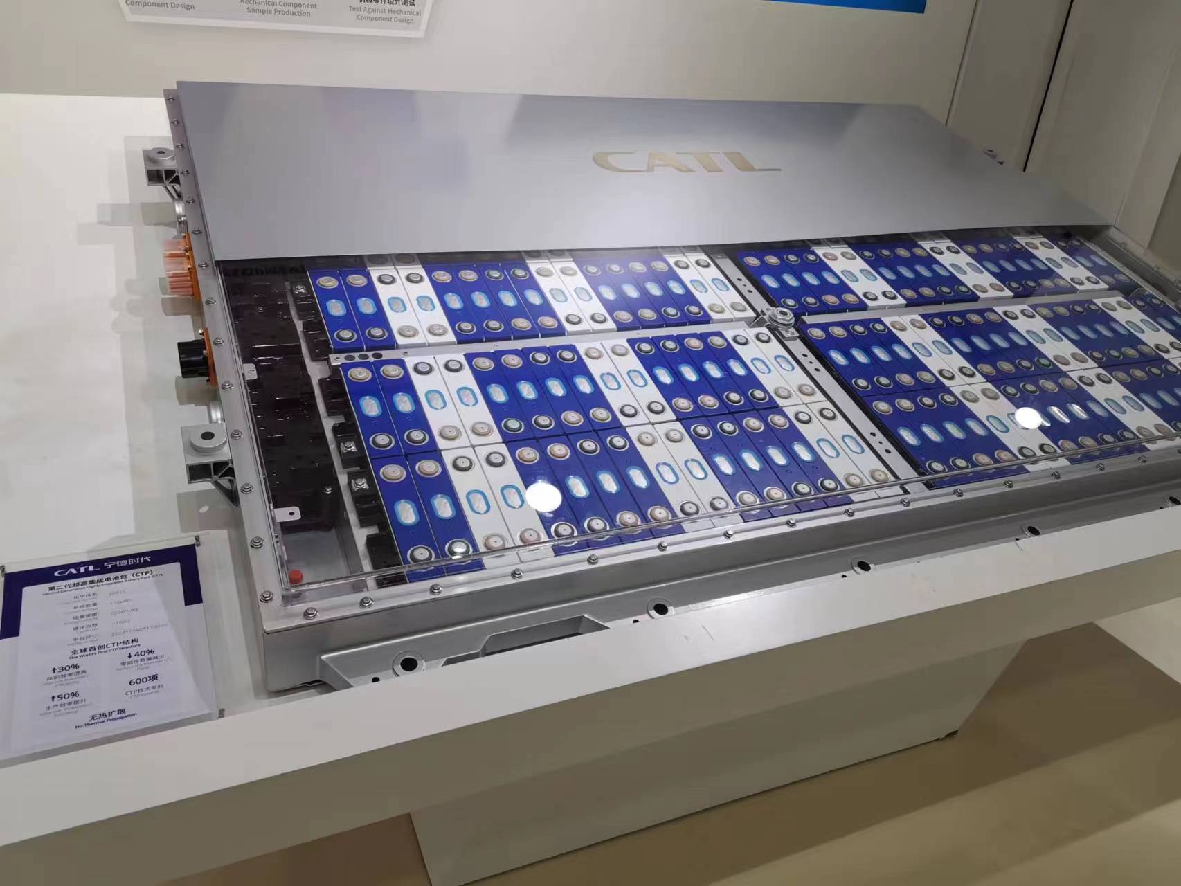 在寧德市蕉城區(qū)的赤鑒湖邊,矗立著一座近百米高、電芯形狀的大樓,這就是寧德時代總部大樓。進門右手邊的展廳內(nèi)詳細展示了寧德時代四個方面的創(chuàng)新:材料體系創(chuàng)新、結(jié)構(gòu)創(chuàng)新、極限制造創(chuàng)新、商業(yè)模式創(chuàng)新。
