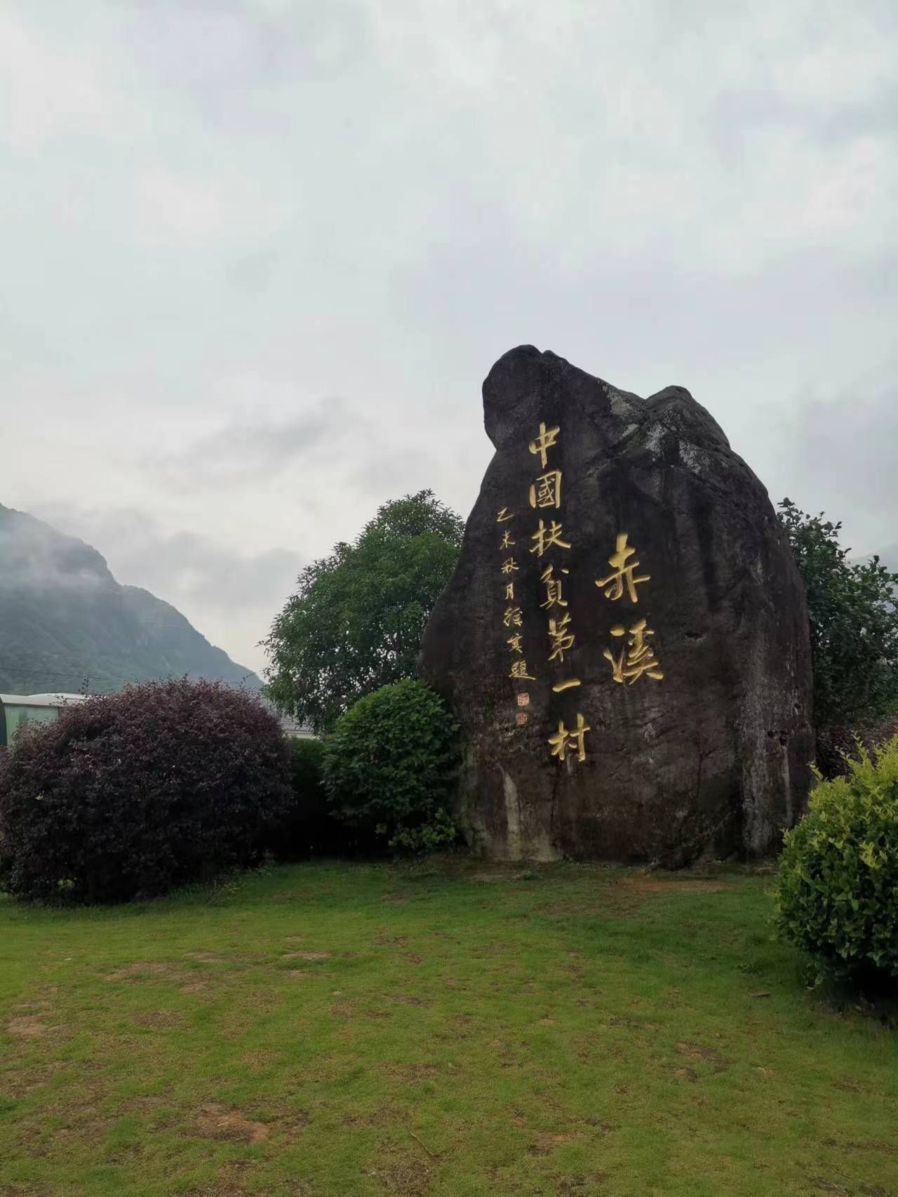 福鼎市磻溪鎮赤溪村,青山環繞,竹影婆娑,一棟棟白墻黛瓦的房屋掩映在樹叢中,靜靜流淌的下山溪和九鯉溪在村寨內交匯,村口矗立的“中國扶貧第一村”石碑分外醒目。